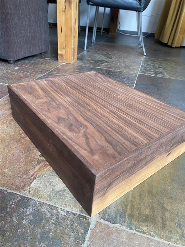 Dit is een kistje dat ik heb gemaakt in mijn eerste leerjaar. Dit was mijn eerste werkstuk waarbij ik fineer heb toegepast. Het was ook de eerste keer dat ik met een verstek heb gewerkt.
